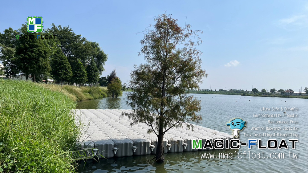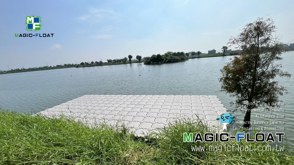 Magic-Float II cubes made a floating platform with 10 meters by 10 meters for canoe, kayak, dragon boats training and activities for water fun. Tai Tam Lake, Xingang Township, Chiayi County, Taiwan 20250411